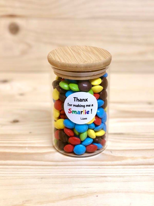 Deze voorraadpotten zijn gevuld met lekkere snoep en voorzien van een gepersonaliseerde sticker met een leuke tekst en de naam van jou kindje .