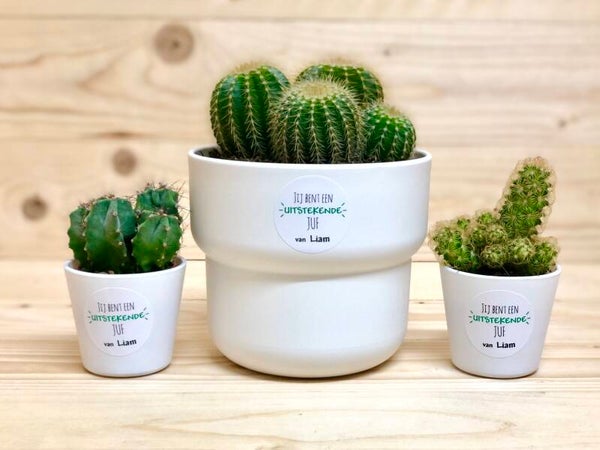 Deze schattige cactussen kan je personaliseren met de naam van jou Juf/Meester en die van jou kindje en Tadaaaaa je hebt een uniek en persoonlijk afscheidscadeau ! Leuk in de klas of past in ieder interieur .