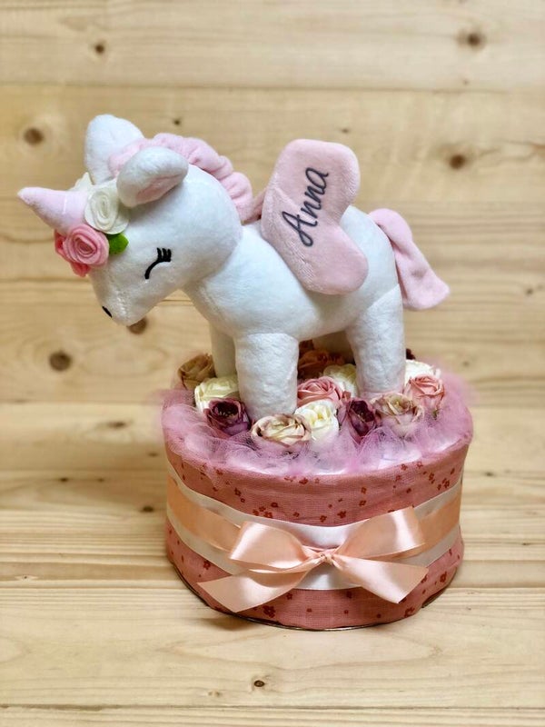In onze pampertaarten verwerken wij standaard pampers maatje 2 van Pampers ( premium protection ) en natuurlijk een Schattige Unicorn met de naam en geboortedatum van het kindje.