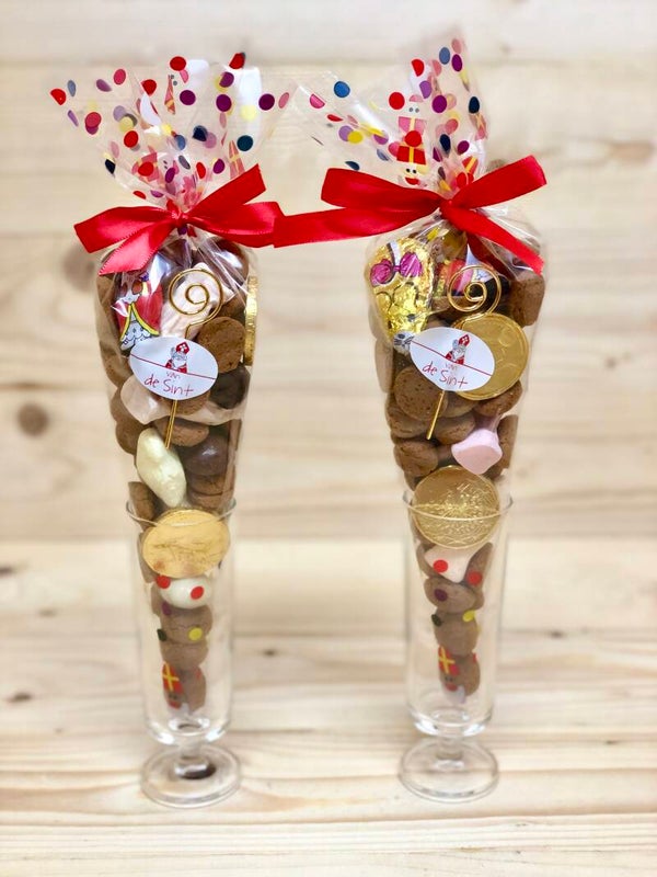 Binnenkort komt hij alweer aan : Sinterklaas ! Op zoek naar een lekker cadeautje of traktatie voor 6 december ? Dit zakje vol lekkernijen is het ideale cadeautje . Aarzel zeker niet om ons te contacteren , zodat wij een Sint zakje op maat kunnen maken , aangepast aan het budget . Bij grote hoeveelheden voorzien wij een leuke korting .