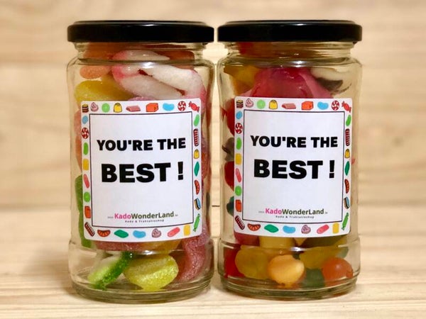 Wil Je Graag Iemand Verrassen Met Een Lekker Cadeautje ? Kies Dan 1 Van Onze Leuke Snoeppotten  Gevuld met de Beste Zoete of Zure Snoepjes. Heb Je Een Speciale Gelegenheid, Contacteer Ons Zodat We Een Snoeppot Maken Met Een Aangepaste Tekst Of Tekening !