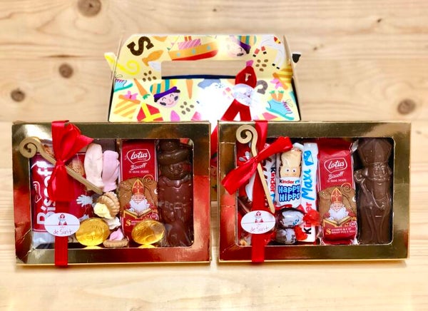 Binnenkort komt hij alweer aan : Sinterklaas ! Op zoek naar een lekker cadeautje of traktatie voor 6 december ? Dit Sint doosje vol lekkernijen is het ideale cadeautje . Aarzel zeker niet om ons te contacteren , zodat wij een Sint doosje op maat kunnen maken , aangepast aan het budget . Bij grote hoeveelheden voorzien wij een leuke korting .