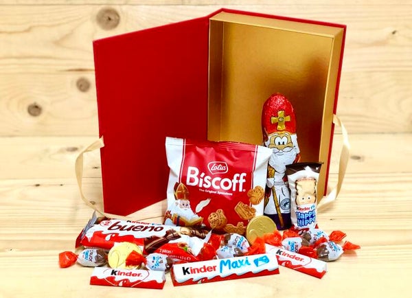 Binnenkort komt hij alweer aan : Sinterklaas ! Op zoek naar een lekker cadeautje of traktatie voor 6 december ? Dit Sint doosje vol lekkernijen is het ideale cadeautje . Aarzel zeker niet om ons te contacteren , zodat wij een Sint doosje op maat kunnen maken , aangepast aan het budget . Bij grote hoeveelheden voorzien wij een leuke korting .