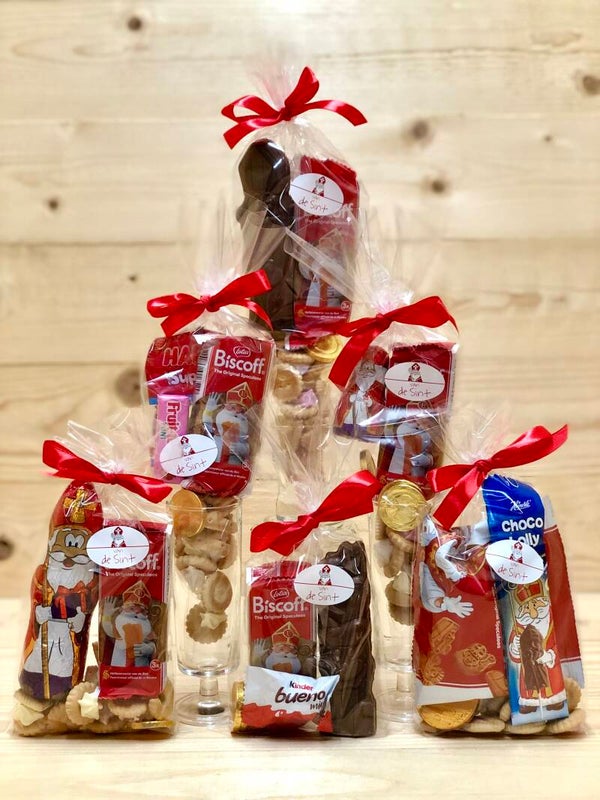 Binnenkort komt hij alweer aan : Sinterklaas ! Op zoek naar een lekker cadeautje of traktatie voor 6 december ? Dit zakje vol lekkernijen is het ideale cadeautje . Aarzel zeker niet om ons te contacteren , zodat wij een Sint zakje op maat kunnen maken , aangepast aan het budget . Bij grote hoeveelheden voorzien wij een leuke korting .