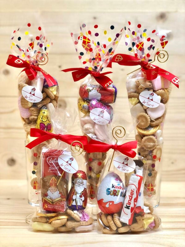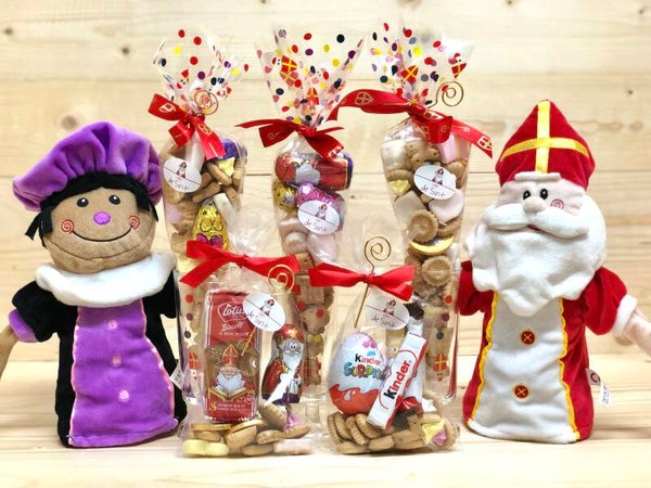 Binnenkort komt hij alweer aan : Sinterklaas ! Op zoek naar een lekker cadeautje of traktatie voor 6 december ? Dit zakje vol lekkernijen is het ideale cadeautje . Aarzel zeker niet om ons te contacteren , zodat wij een Sint zakje op maat kunnen maken , aangepast aan het budget . Bij grote hoeveelheden voorzien wij een leuke korting .