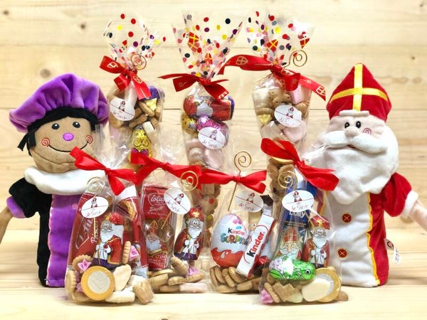 Binnenkort komt hij alweer aan : Sinterklaas ! Op zoek naar een lekker cadeautje of traktatie voor 6 december ? Dit zakje vol lekkernijen is het ideale cadeautje . Aarzel zeker niet om ons te contacteren , zodat wij een Sint zakje op maat kunnen maken , aangepast aan het budget .              Bij grote hoeveelheden voorzien wij een leuke korting .