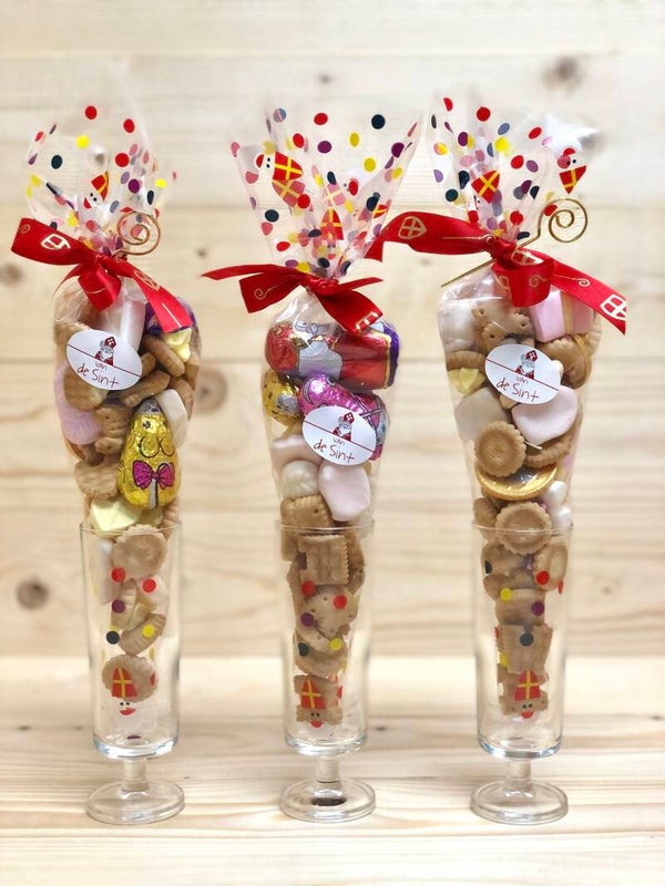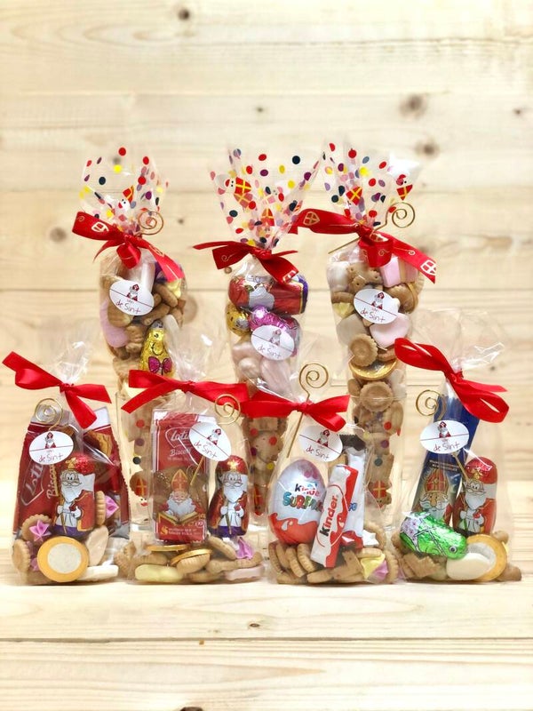 Binnenkort komt hij alweer aan : Sinterklaas ! Op zoek naar een lekker cadeautje of traktatie voor 6 december ? Dit snoepzakje van de Sint vol lekkernijen is het ideale cadeautje . Aarzel zeker niet om ons te contacteren , zodat wij een Sint zakje op maat kunnen maken , aangepast aan het budget . Bij grote hoeveelheden voorzien wij een leuke korting .