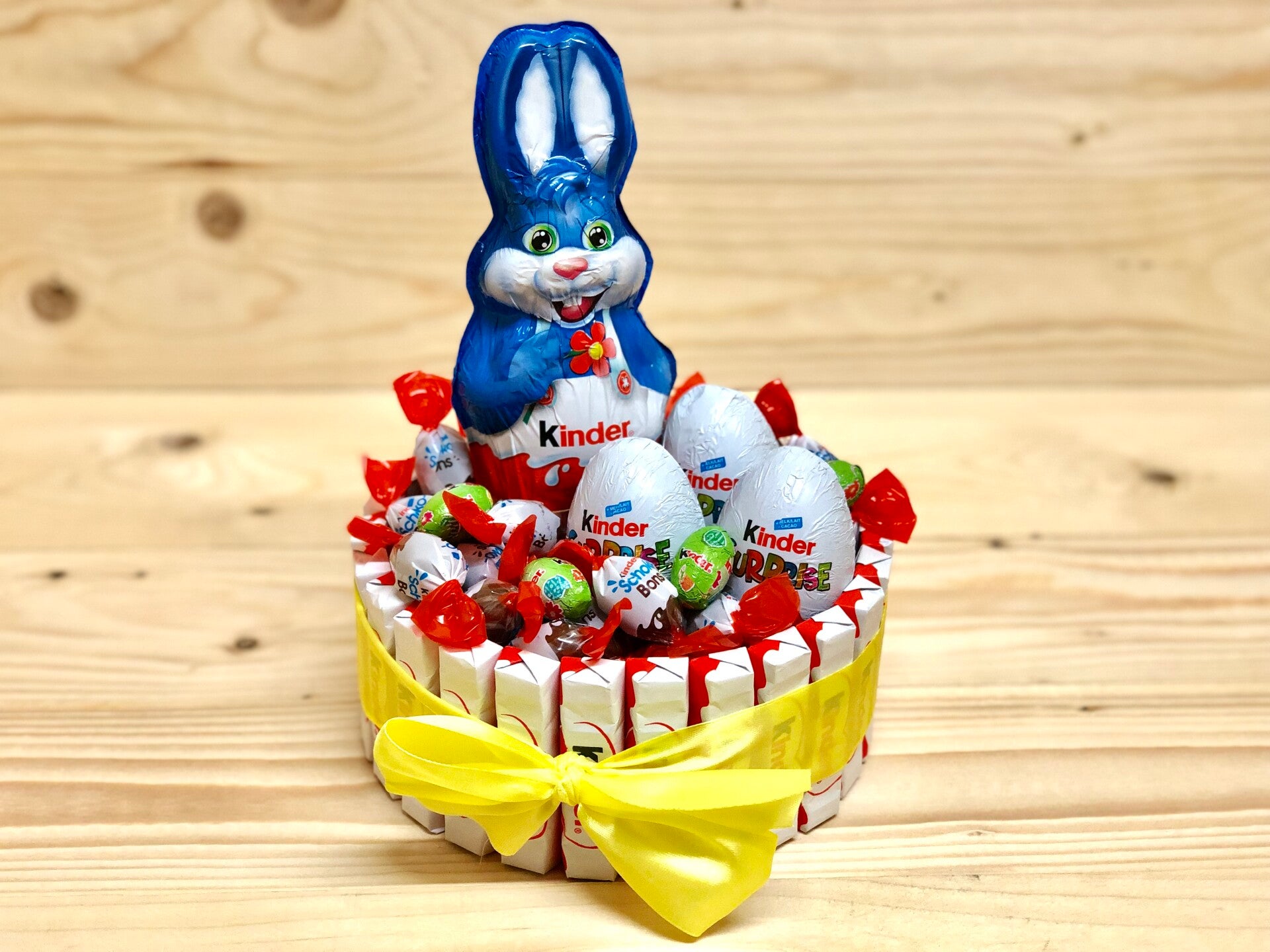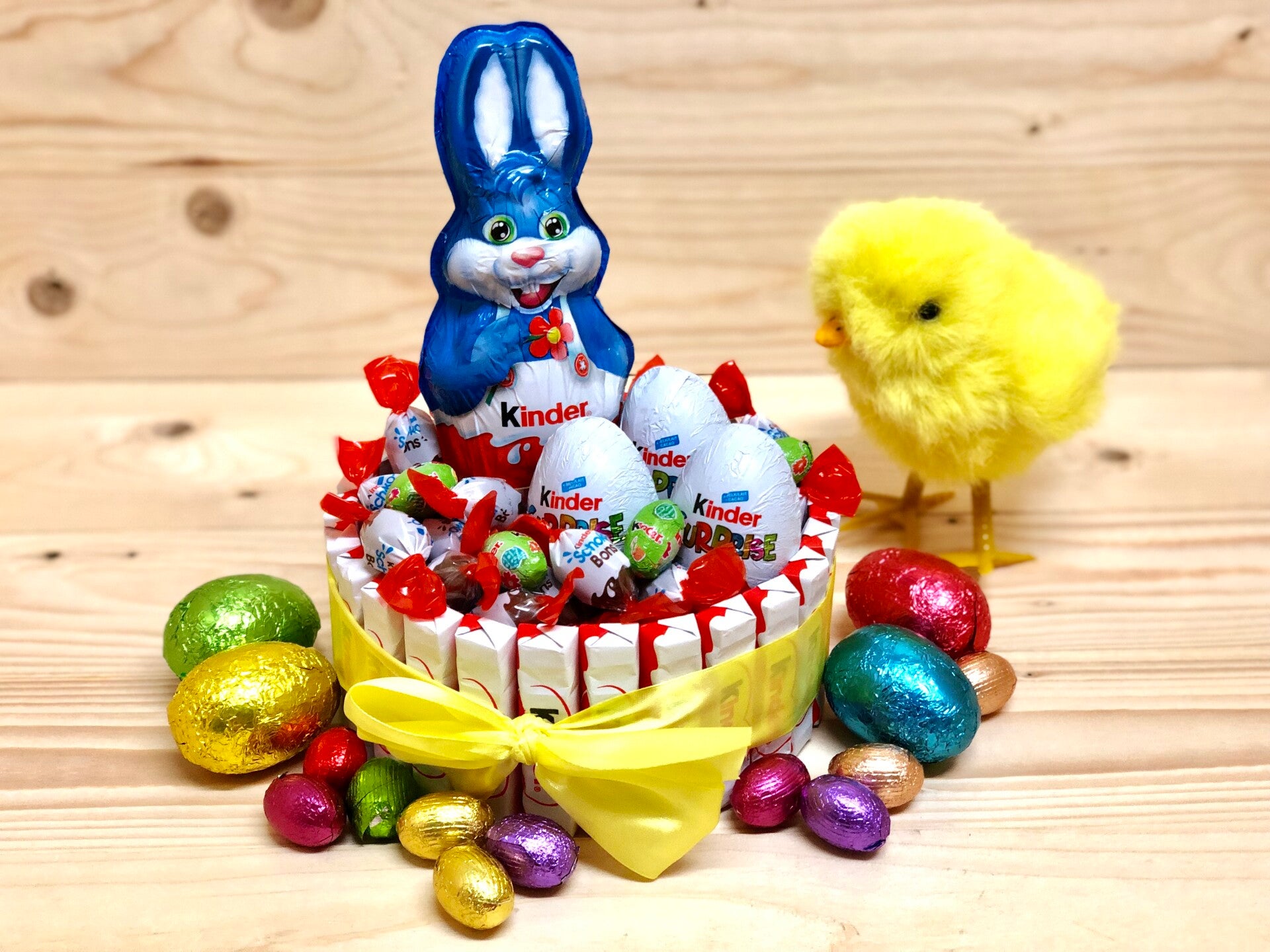 In ons Assortiment hebben we diverse leuke cadeautjes met verschillende soorten chocolade en paaseieren . Kies uit een mix van verschillende chocolade of enkel Kinderchocolade .