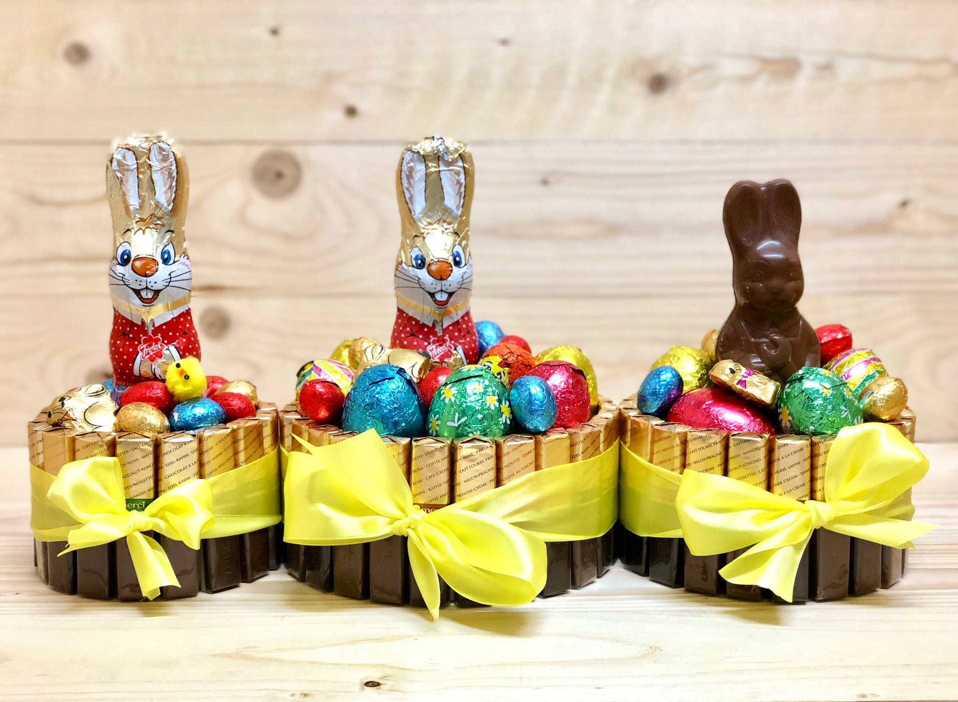 In ons Assortiment hebben we diverse leuke cadeautjes met verschillende soorten chocolade en paaseieren . Kies uit een mix van verschillende chocolade of enkel Kinderchocolade .