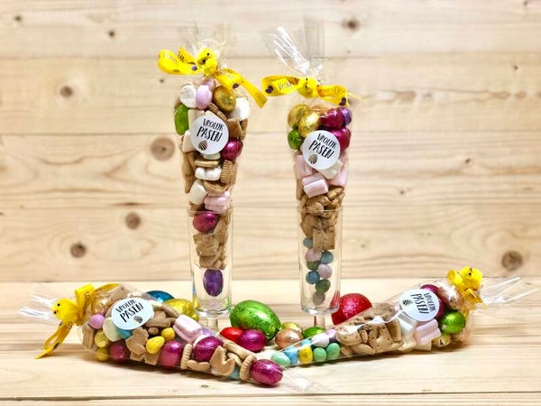 In ons Assortiment hebben we diverse leuke cadeautjes met verschillende soorten chocolade en paaseieren . Kies uit een mix van verschillende chocolade of enkel Kinderchocolade .